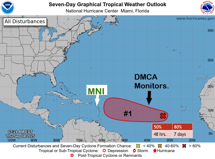 At this early stage, it remains uncertain when the system will develop or whether it could impact Montserrat. Residents and visitors are urged to closely monitor its progress, assess their risk to hurricane hazards, review preparedness plans, and stay ready.