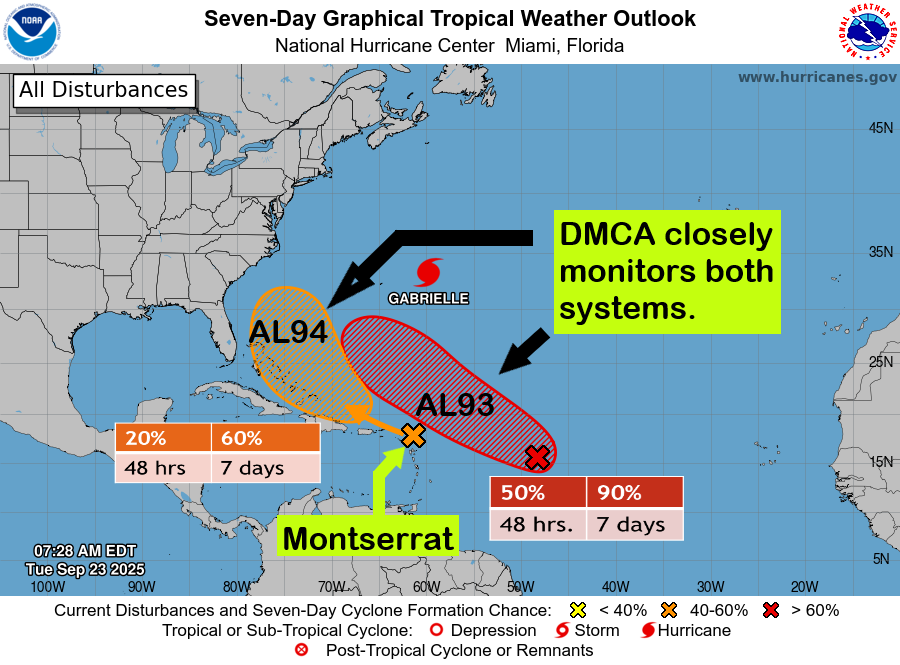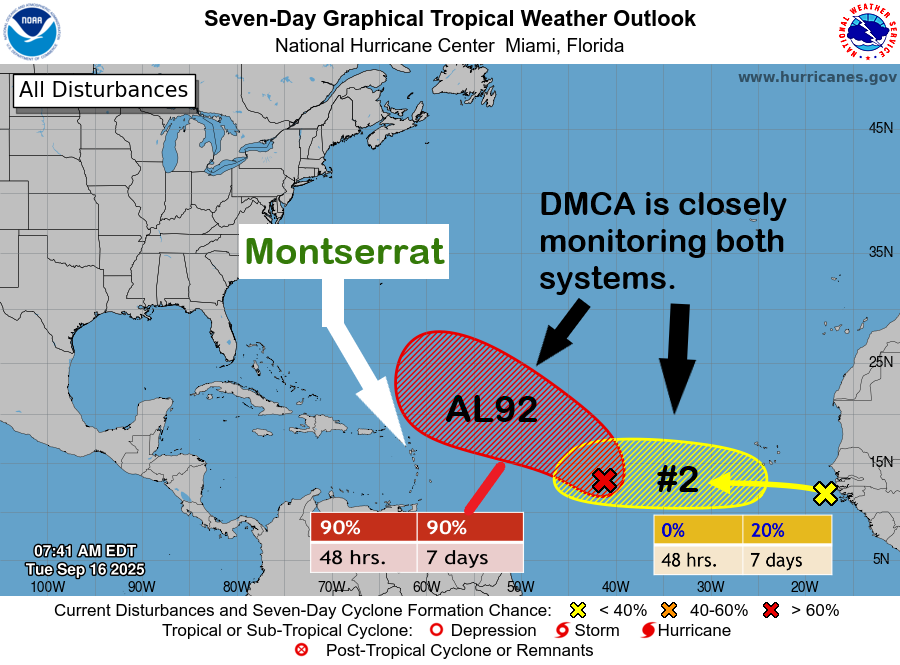 At this time, neither system poses an immediate threat to Montserrat. However, residents are urged to stay informed, remain vigilant, and be prepared.