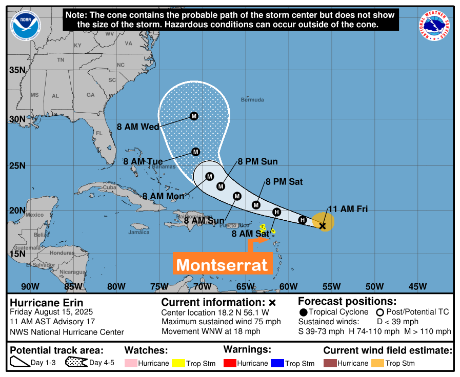 At this early stage, it remains unclear if or when the system will develop or whether it will impact the northeast Caribbean. Interests in Montserrat should closely monitor its progress.
